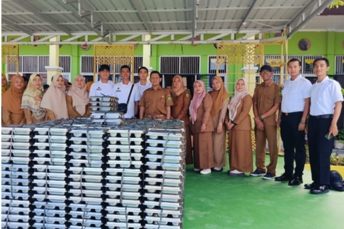 kira pukul 10.45 Wib, tampak paket Makanan Bergizi Gratis diberikan kepada pihak sekolah dan tanda terima langsung sebanyak 768 paket Makanan Bergizi Gratis diterima dan ditanda tangani Kepsek SMAN 3 Siak Hulu Agus Sutiyono, S.H