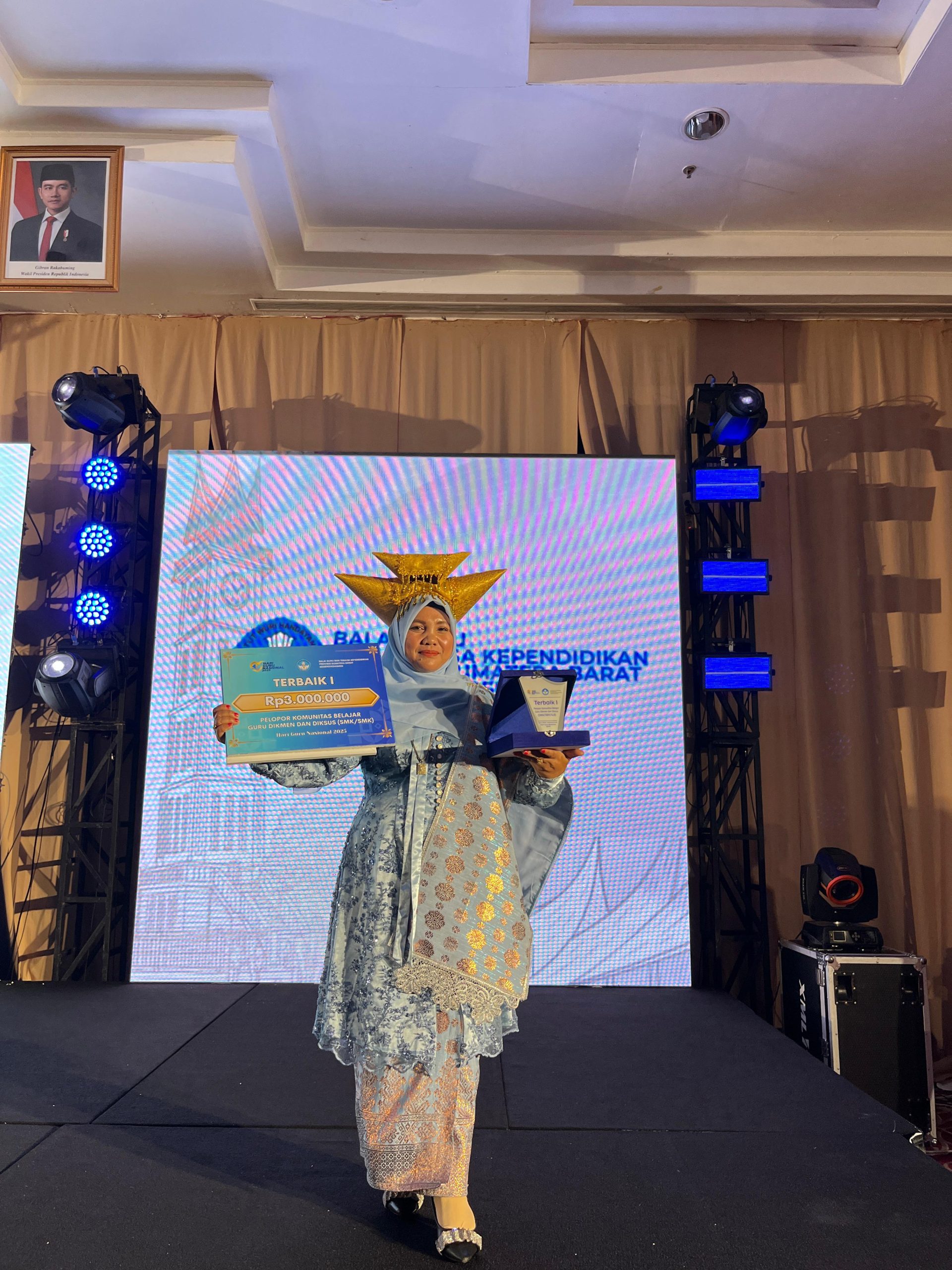 Resti Hidayati Putri dari SMAN 2 Pasaman terpilih sebagai Juara 1 Pelopor Komunitas Belajar Guru Sumbar pada Apresiasi GTK 2025 di Padang.