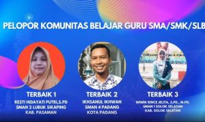 Padang -Presesimedia.com. Ajang Apresiasi Guru dan Tenaga Kependidikan (GTK) Sumatera Barat 2025 kembali memunculkan nama baru yang menonjol dalam penguatan ekosistem komunitas belajar guru. Resti Hidayati Putri, S.Pd, guru SMAN 2 Kabupaten Pasaman, berhasil meraih peringkat pertama kategori Pelopor Komunitas Belajar Guru SMA/SMK/SLB tingkat provinsi.