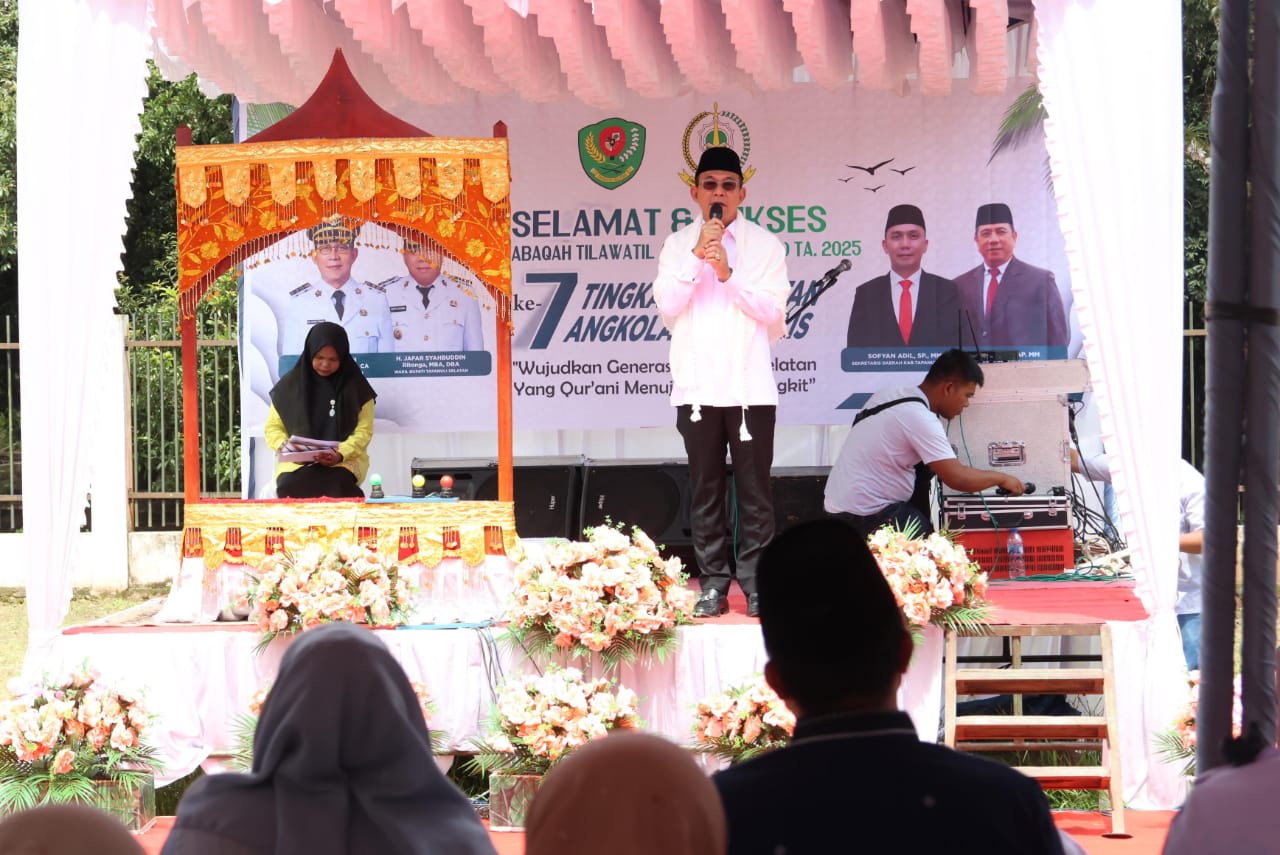 GeraiMedia.com – Tapanuli Selatan. Bupati Tapanuli Selatan (Tapsel), H. Gus Irawan Pasaribu, secara resmi membuka Musabaqah Tilawatil Qur’an (MTQ) ke-7 tingkat Kecamatan Angkola Muara Tais, Rabu (16/4/2025), di halaman kantor camat setempat. Kegiatan ini akan berlangsung selama dua hari hingga Kamis (17/4/2025).