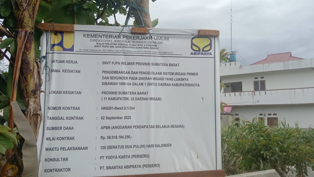 Bukittinggi,  Presesimedia.com – Proyek pengembangan sistem irigasi senilai Rp56 miliar yang dikerjakan oleh PT Brantas Abipraya (Persero) di tiga titik wilayah Kota Bukittinggi kembali mendapat sorotan publik. LSM P2NAPAS (Perkumpulan Pemuda Nusantara Pas-Aman) menyampaikan kritik terbuka dan meminta adanya langkah korektif yang cepat dan terukur dari pihak terkait.