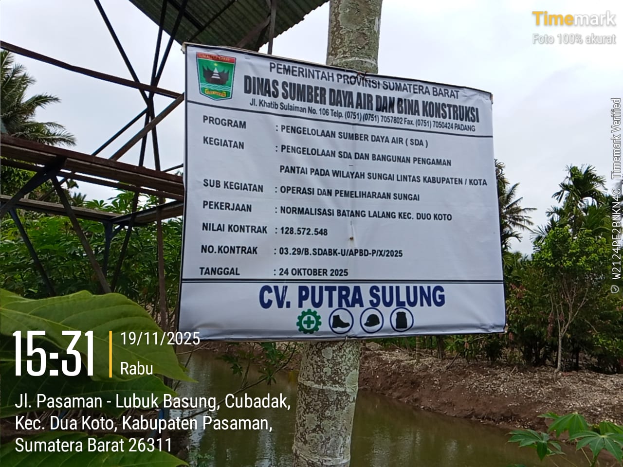Proyek ini bagian dari program Pengelolaan Sumber Daya Air (SDA), kegiatan Pengelolaan SDA dan Bangunan Pengaman Pantai pada Wilayah Sungai Lintas Kabupaten/Kota, sub kegiatan Operasi dan Pemeliharaan Sungai, yang dikelola oleh Dinas Sumber Daya Air dan Bina Konstruksi Provinsi Sumatera Barat. Nomor kontrak proyek adalah 03.29/B.SDABK-U/APBD-P/X/2025, dengan tanggal kontrak 24 Oktober 2025.