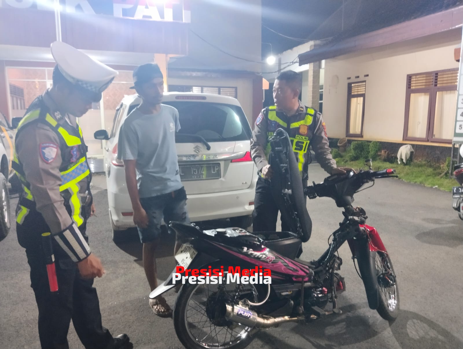 Pati Jawa Tengah – Presesimedia.com.        Satuan Lalu Lintas Polresta Pati mengintensifkan penegakan hukum (gakkum) terhadap pelanggaran lalu lintas berpotensi kecelakaan, khususnya penggunaan knalpot tidak sesuai spesifikasi teknis atau knalpot brong, Selasa (3/2/2026) malam.