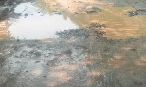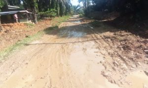 Keterangan Gambar: Titik jalan yang ditambal secara swadaya oleh masyarakat berada di jalur umum dari Simpang Lubuk Buaya menuju Kampung Lubuk Bontar, lalu berlanjut ke Kampung Gunung Bungkuk Bang, Nagari Air Bangis, Kecamatan Sungai Beremas. Kondisi jalan sebelumnya