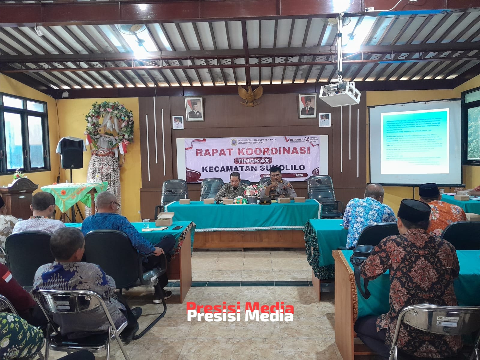 Pati Jawa Tengah, presesisimedia.com-Menjelang datangnya Bulan Suci Ramadhan dan Hari Raya Idul Fitri 1447 Hijriah, jajaran Forkopimcam Sukolilo menggelar rapat koordinasi tingkat kecamatan (Rakorcam) di Aula Kantor Kecamatan Sukolilo, Kabupaten Pati, Jumat (6/2/2026) pukul 09.00 WIB hingga selesai.