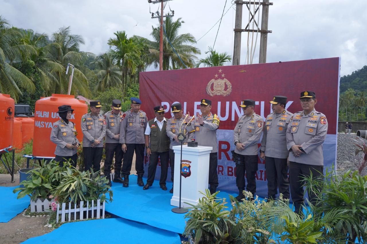 Peresmian ditandai dengan penekanan tombol, peninjauan toren air, pembangunan hunian sementara (Huntara), serta pengecekan langsung aliran air bersih.
