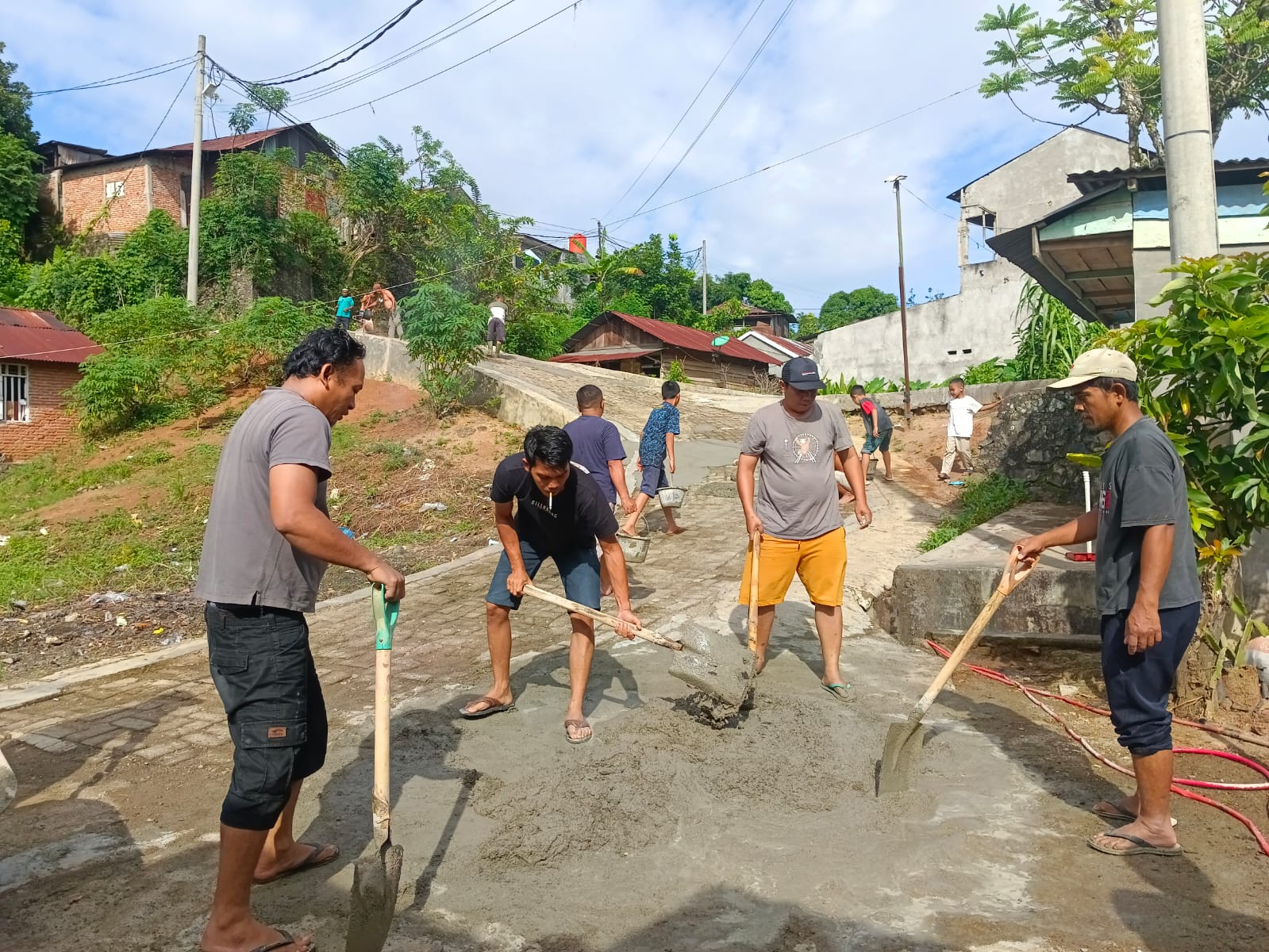 “Kami berinisiatif memperbaiki tanjakan ini secara gotong royong karena sudah lama rusak dan membahayakan pengguna jalan,” ujarnya.